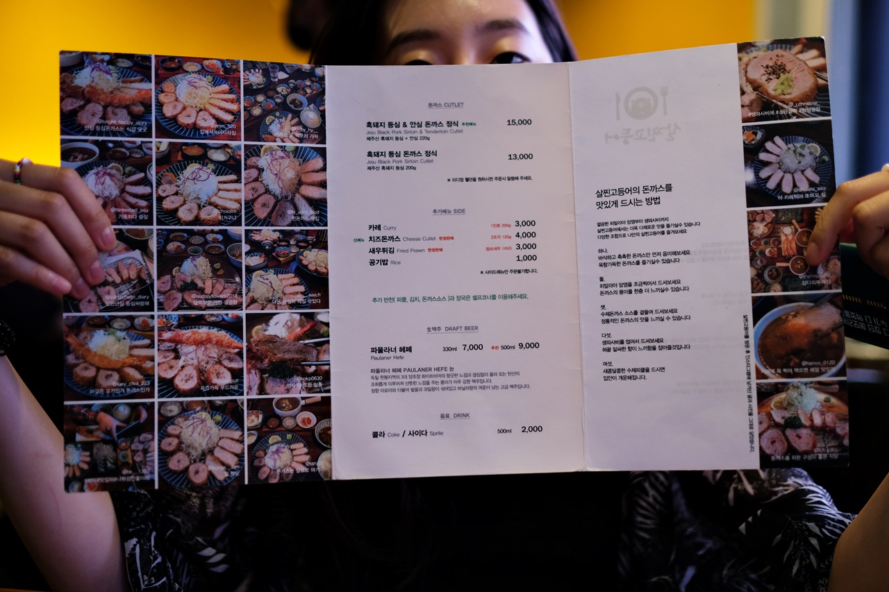 돈가스는 아래 메뉴판과 같이 등심 정식 13000원, 안심등심정식 15000원으로