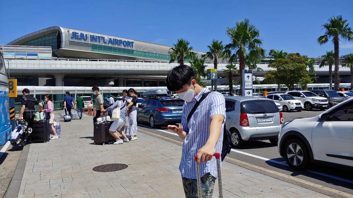 공항의 야자수들이 외국에 온듯한 기분이들게 해준다.