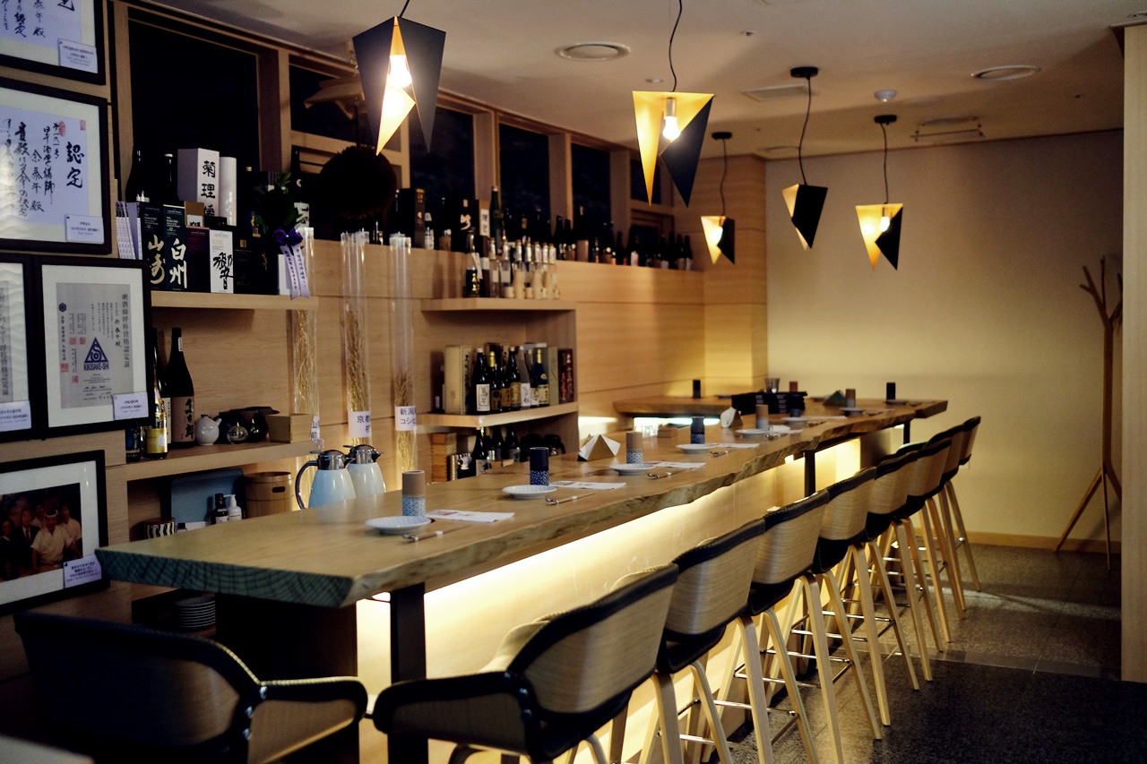 들어가자 마자 앞에 보이는 사케바 와인과 우측 문열고 들어가면 있는 오마카세 스시전.